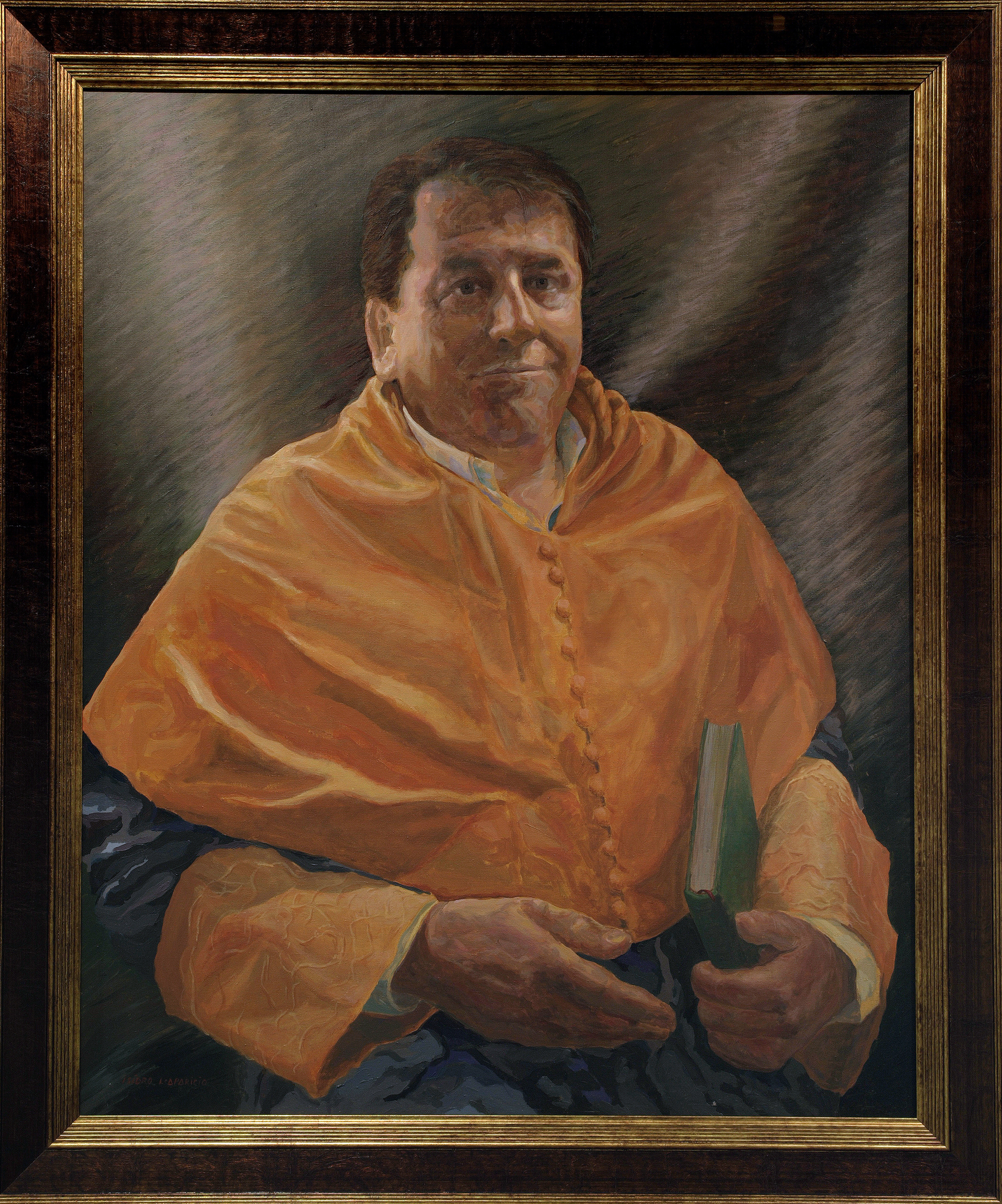 Retrato sedente de medio cuerpo de Juan de Dios Jiménez Aguilera, Decano de la Facultad de Ciencias Económicas y Empresariales.