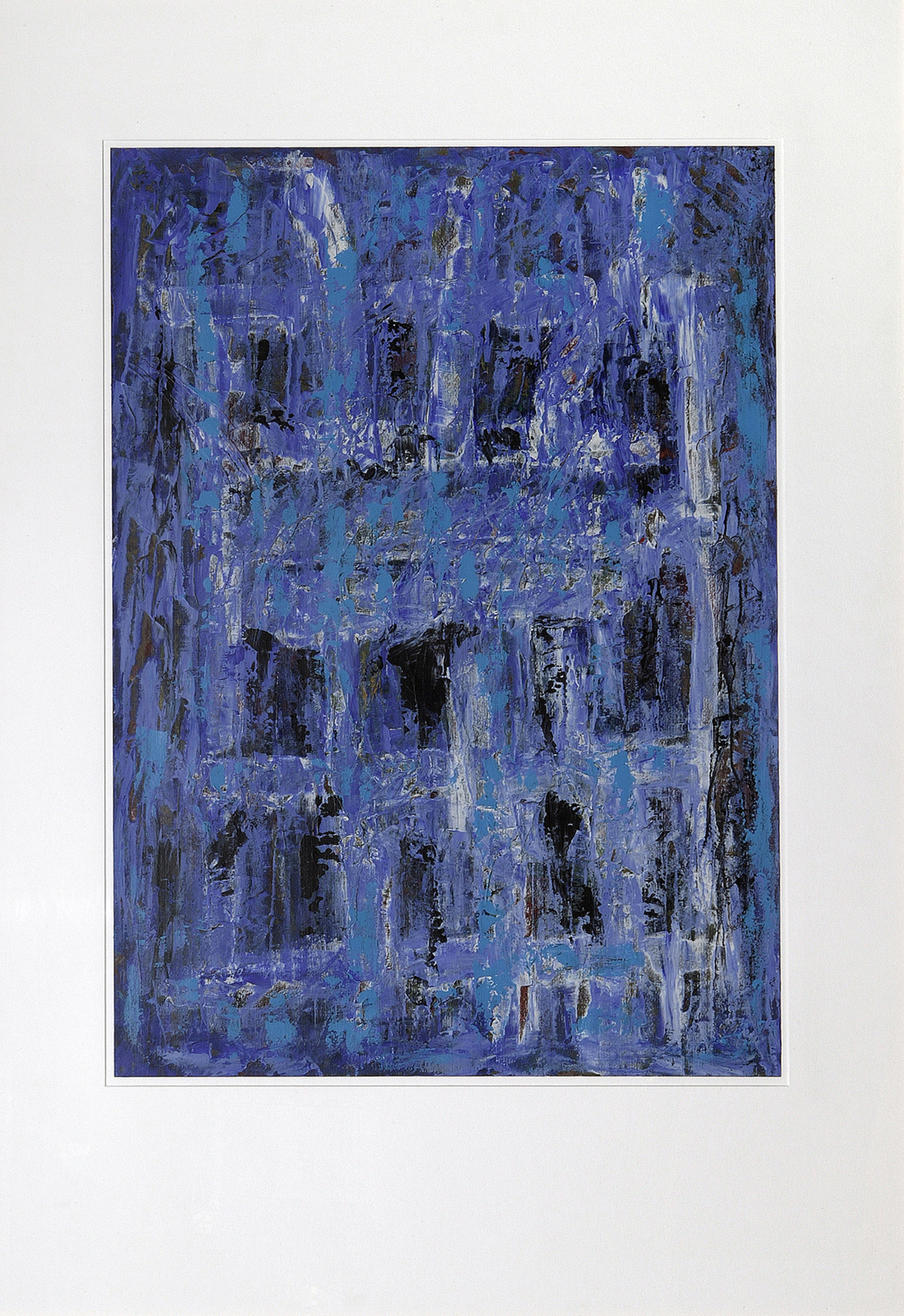 La obra se enmarca en el movimiento artístico conocido como abstracción lírica siguiendo la estela del artista ruso Kandinsky, iniciada ya durante los años 1910-1920. El propósito de la corriente trata de abstraer en la mayor medida de lo posible la realidad tangible del mundo sensible, dando lugar a obras compositivamente abstractas, cargadas de emociones que traspasan el lienzo y que el artista quiere transmitir por medio del color; de manera que, la forma, la cantidad y la textura de la aplicación de los pigmentos repercuten en la percepción del espectador. En este caso, Juan Antonio Díaz, hace uso de la superposición de planos cromáticos para crear dobles planos destacando las tonalidades frías azuladas sobre el negro absoluto que casi parecen crear luces y sombras o llenos y vacíos en una obra prácticamente monocroma. Técnicamente aplica pinceladas a pastel de trazo nervioso que produce a la lejanía del ojo espectador una confluencia de líneas paralelas verticales y horizontales.