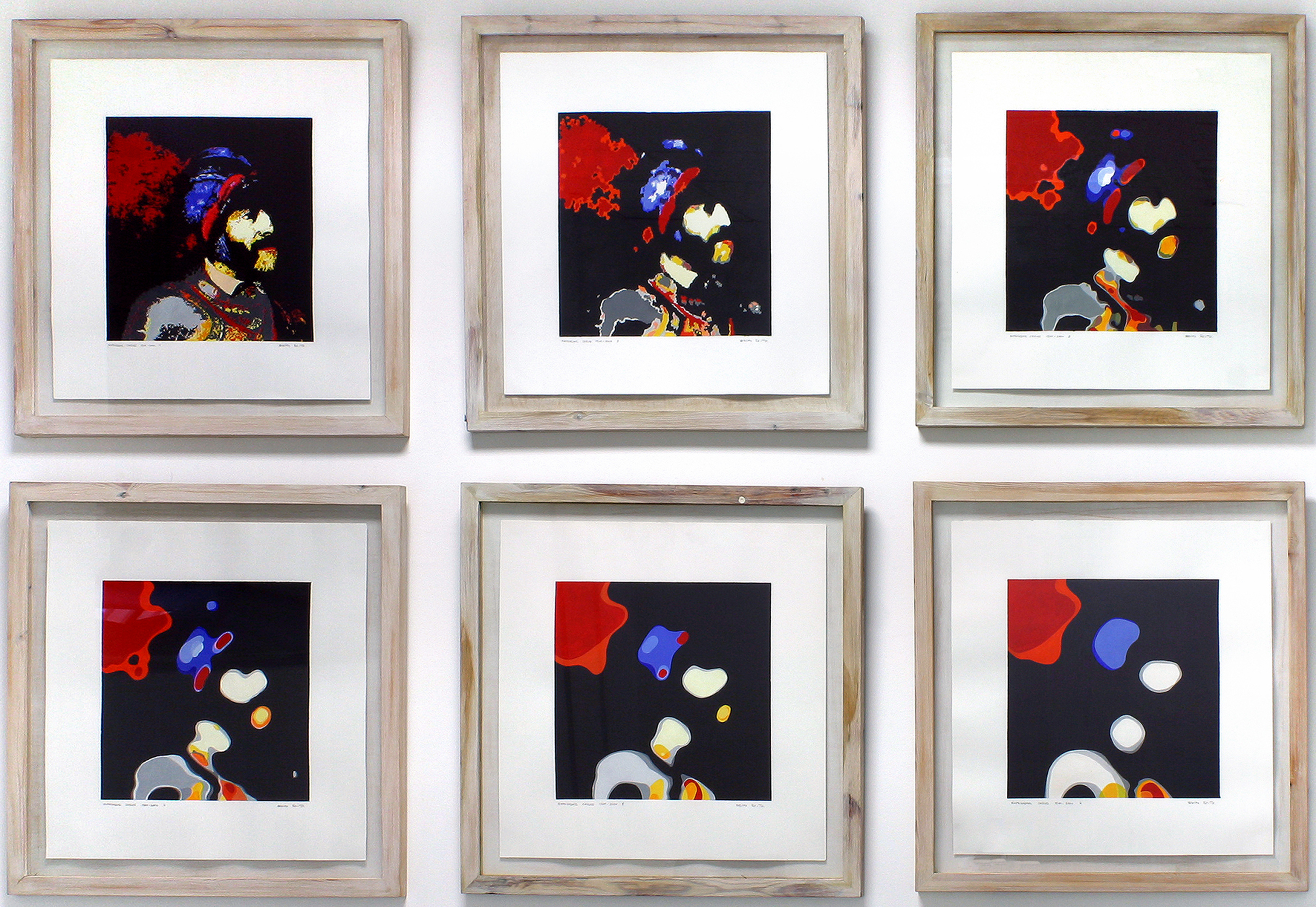 La obra, en su conjunto, se compone de una serie de seis grabados a papel, obtenido mediante la técnica de la reproducción simultánea del serigrafiado.