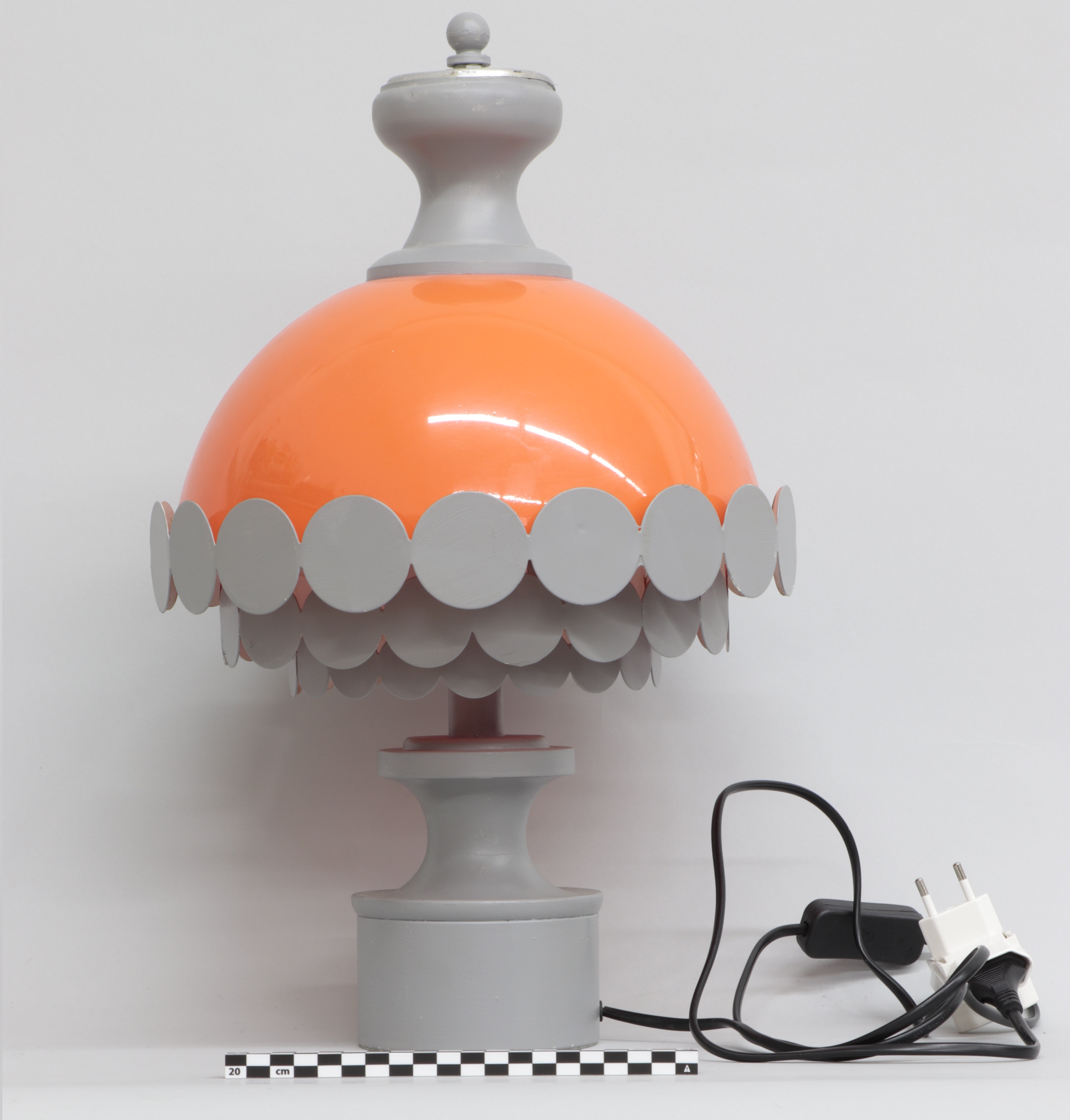 Esta pieza es comúnmente denominada lámpara de mesa, formada por tulipa, y base de apoyo, además de la rosca para colocar la bombilla y un cable para conectarla a la red eléctrica. Después de ser revestida con tela de fieltro gris por el artista ha paso a ser considerada una obra de arte conceptual que encierra los recuerdos de su diseñador.