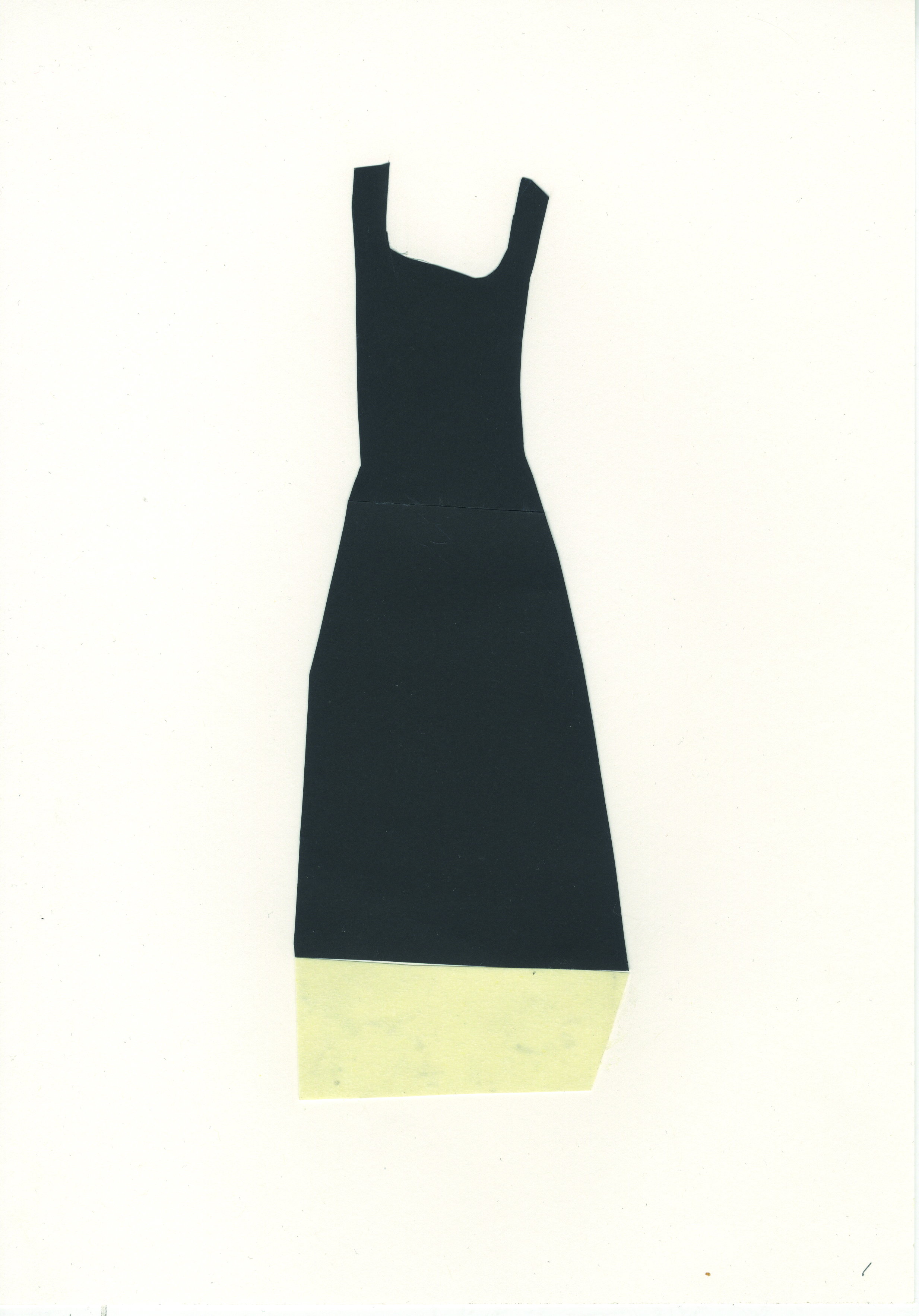La pieza está realizada mediante la técnica de collage, diferenciando tres partes mediante el recorte y pegado de cartulina negra: corpiño, falda y añadido beige.