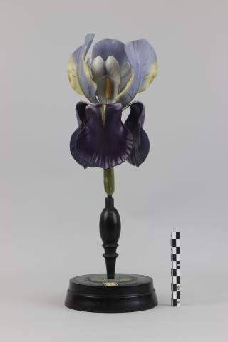 El modelo representa, a escala ampliada, una flor de lirio cárdeno (Iris germanica) perteneciente a la familia de las Iridaceae. Esta planta perenne puede alcanzar los 90 cm. de altura y brota a partir de un bulbo (rizoma).