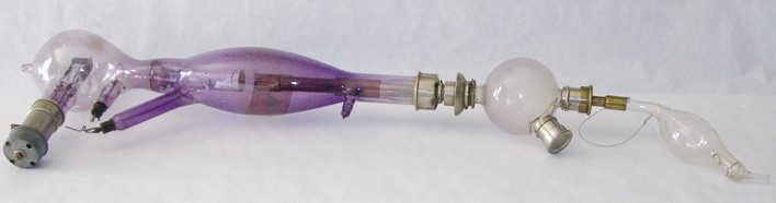 Pieza de cristal fino para la producción de rayos X que utiliza una válvula de vacío. La radiación se emite por la colisión de electrones generados en el cátodo contra los átomos del ánodo.