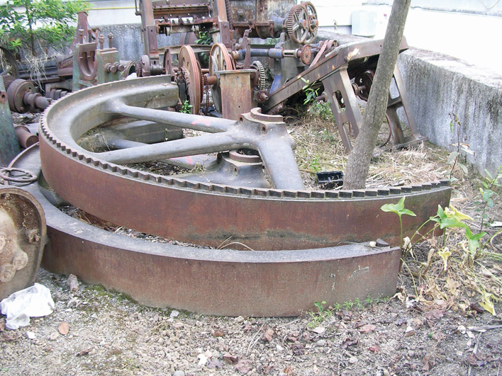 En su momento de vida industrial, estas piezas formaron parte de lo que sería una máquina de vapor integrada en los aparatos de servicio y trabajo del conjunto fabril de "La Vega, Azucarera Granadina" (1904 y 1982), solicitada por la empresa, desde sus inicios, mediante Real Orden del 6 de Agosto de 1904 y que, se terminará instalando rápidamente en un tren de servicio para el apoyo de la producción, facilitando el transporte de efectos y materiales.