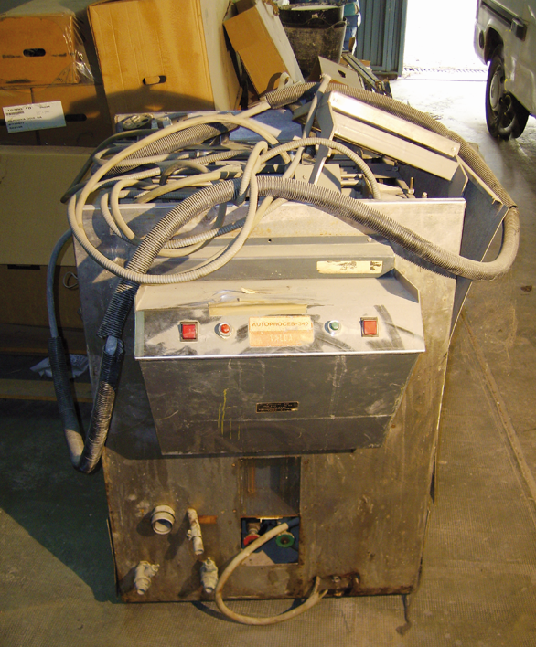 Posee las siguientes inscripciones insertas en la pieza: "VALCA S.A." y "AUTOPROCES-340 / VALCA. Autoproces 340 / volts 220 Hz 50 / Serie nº. 5050 / Sdad. Española de prod Fotográficos".