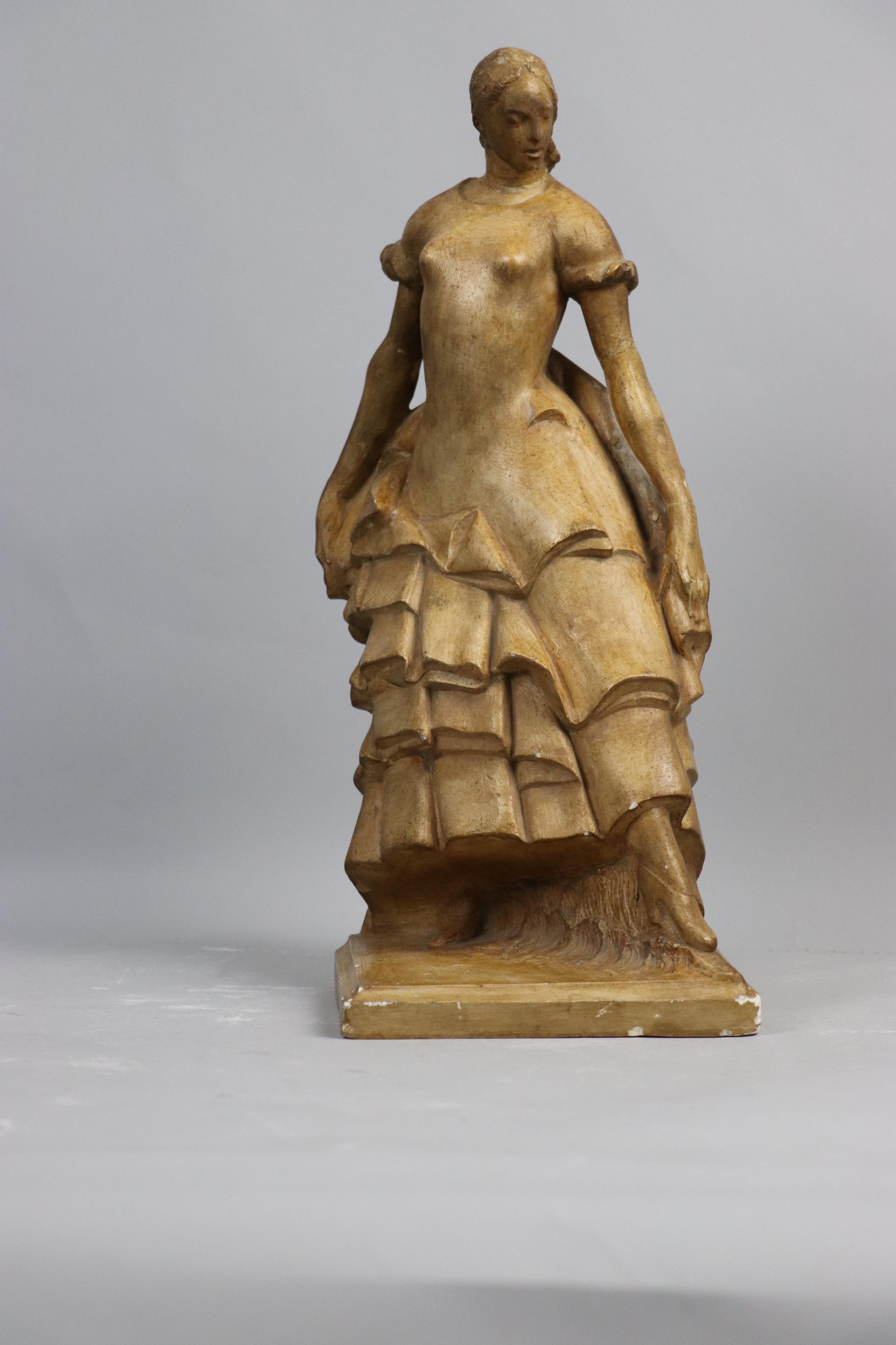 Escultura de bulto redondo realizada por el vaciado de molde en escayola barnizada, que representa la figura de una mujer con el atuendo típico de gitana. Al igual que en otras esculturas del artista, se aprecia la voluntad por mostrar la imagen prototípica del costumbrismo español, y por ende andaluz, asociado al mundo del flamenco. Además, destaca el buen tratamiento de las proporciones y el detalle de los pliegues del vestido.