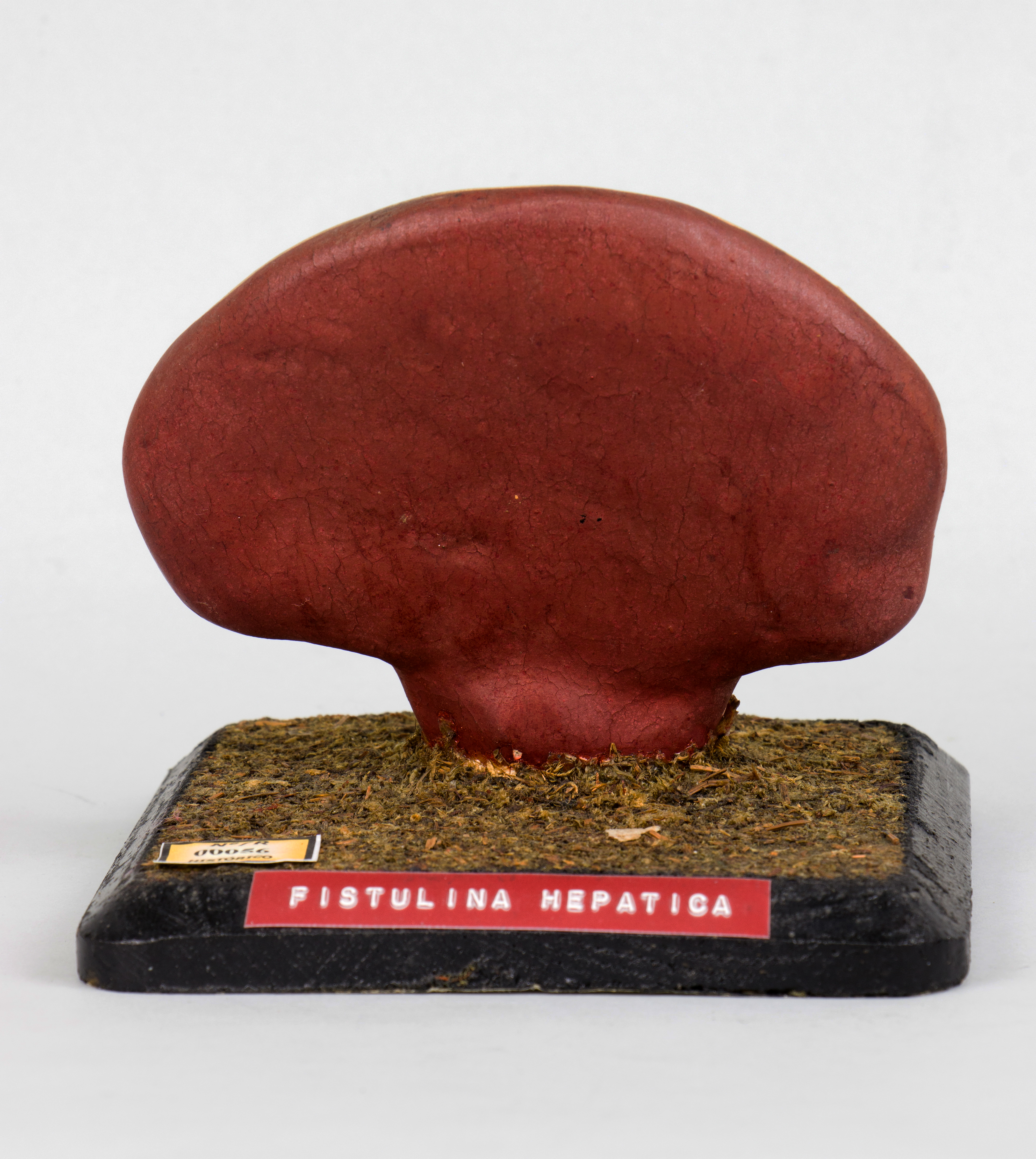 Este modelo nos muestra, a escala 1:1, al hongo comestible denominado Fistulina hepatica, también conocido como "hongo bistec”, “lengua de buey”, "hígado de buey" o “polypore bistec”.