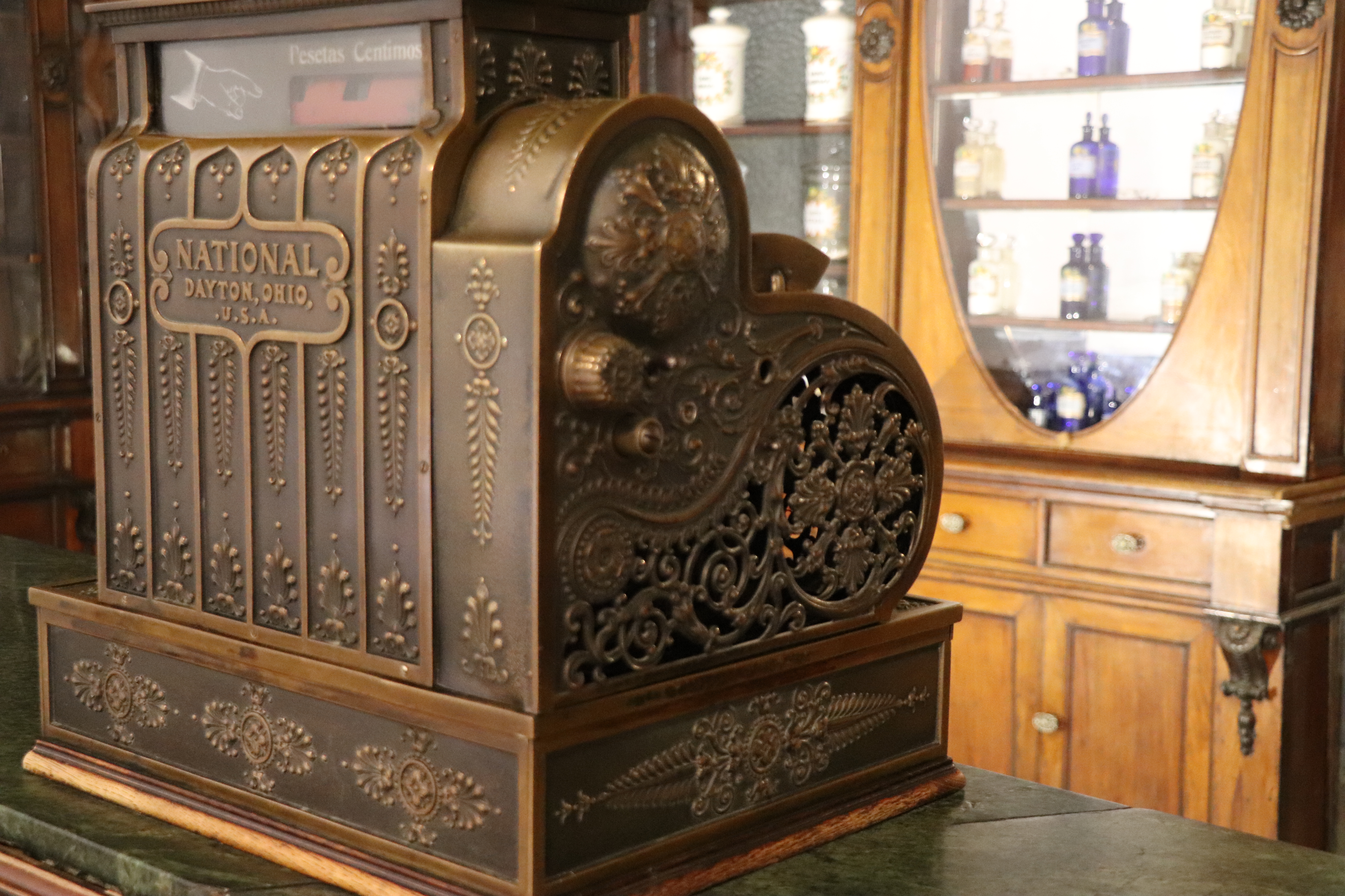 Detalle de la trasera y el lateral izquierdo de la caja registradora.