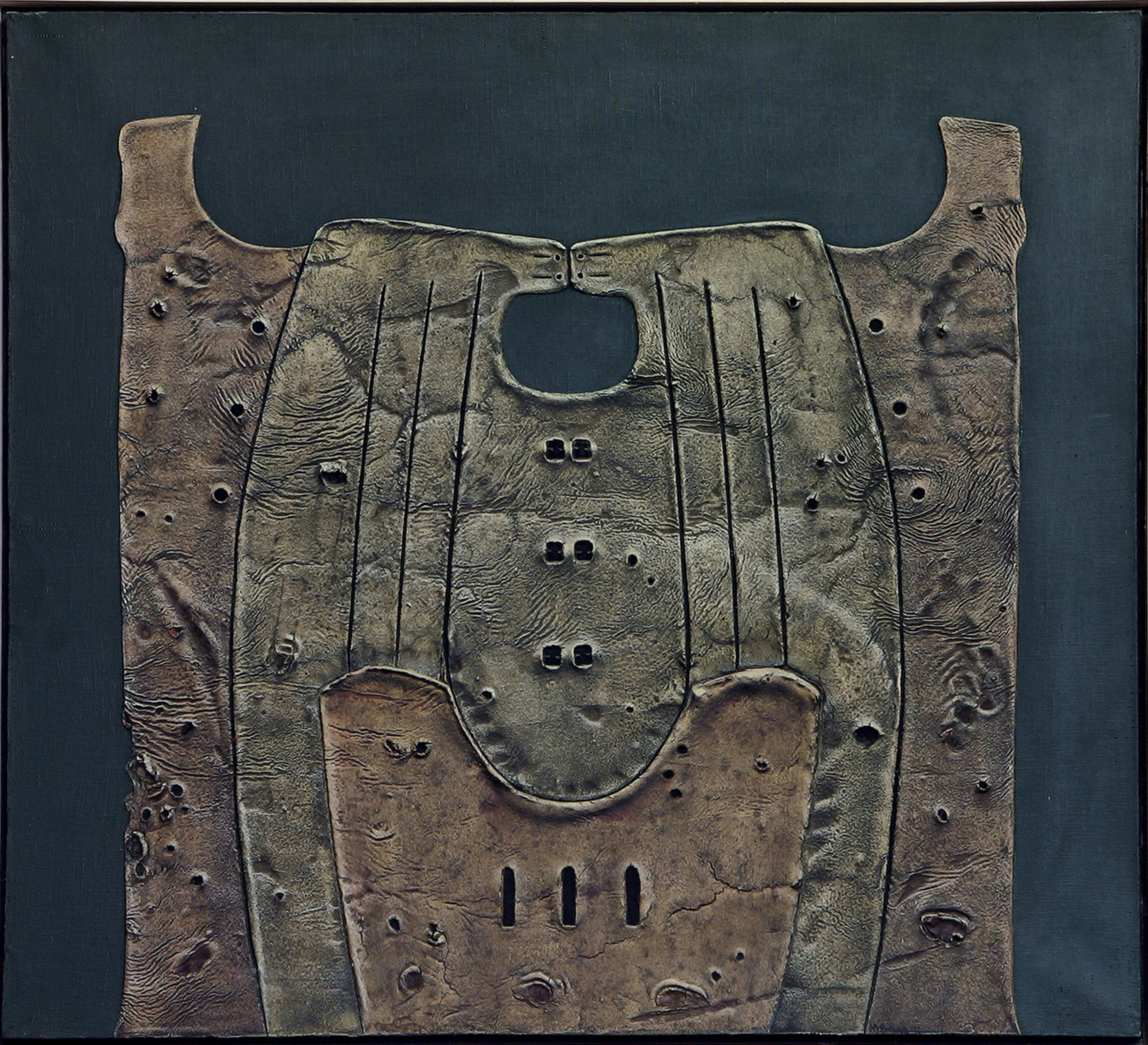 Sobre un fondo negro, Brazam crea una equilibrada composición en la que recurre al objeto en vez de a la pintura para crear dramatismo. La figura u objeto se impone al espectador al ser colocada de manera frontal y en primerísimo plano. El artista emplea un trozo de materia que simula cuero para diseccionarlo y recomponerlo de tal manera que la composición abstracta resultante adquiere una nueva iconografía. Primero propone sentir esa forma, y después, al analizar la semejanza lejana con la realidad, introduce al espectador en el esfuerzo de la abstracción de un modo natural. La obra posee la siguiente inscripción: "J. M. Brazam 72".