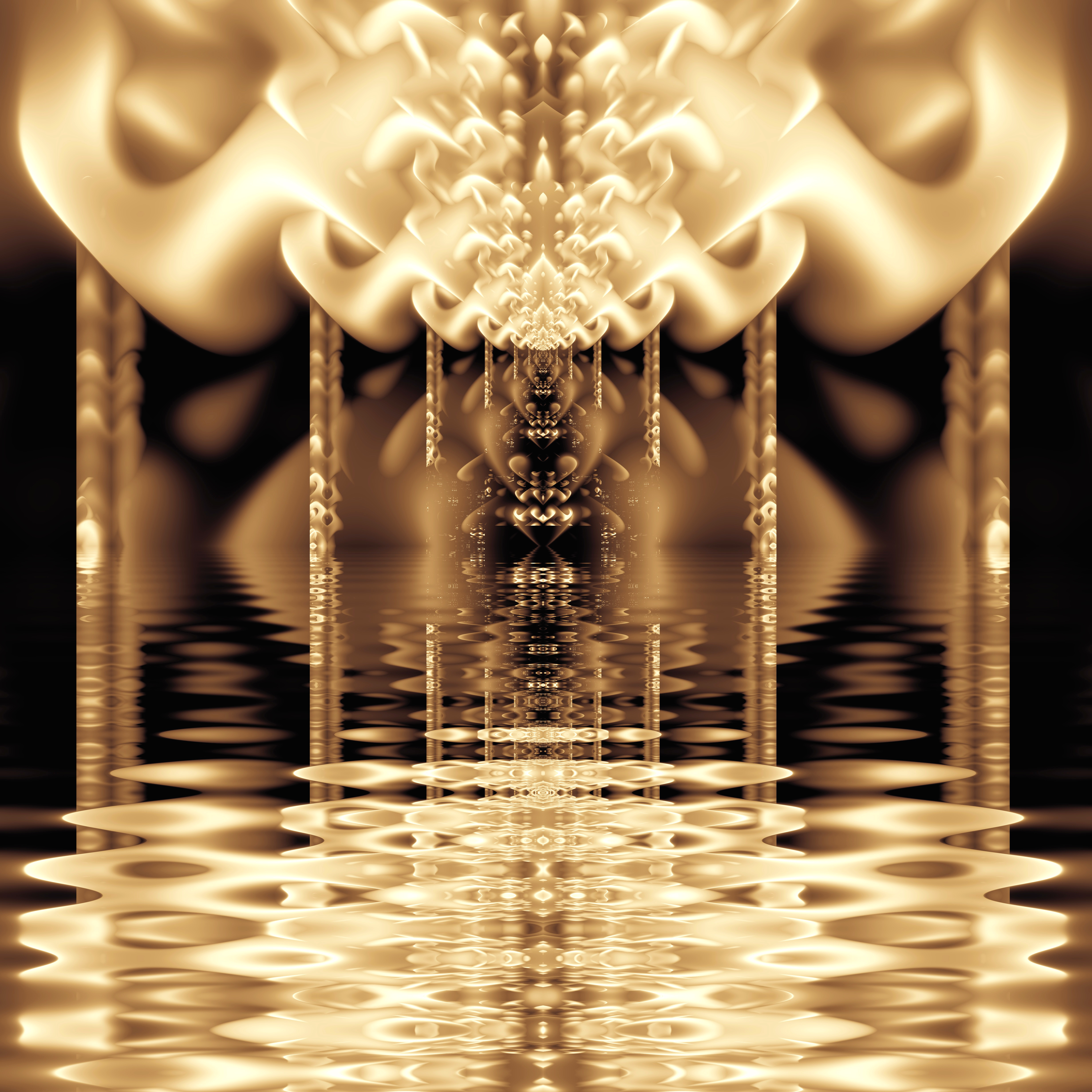 Composición fractal en tonos marrones y sepia que muestra simetría sobre los ejes horizontal y vertical. La mitad inferior, distorsionada por lo que recuerda a la textura de una superficie de agua , parece ser el reflejo de la mitad superior, al igual que sucede en los estanques de la Alhambra. En el centro de la imagen hay una pequeña forma desde la que parten ocho líneas verticales de tamaño creciente hacia los laterales de la composición, creando un efecto de perspectiva y evocando un espacio flanqueado por columnas, que se recortan sobre un fondo oscuro. La parte superior está ocupada por unas suaves formas de bordes difuminados en tonos sepia, con su correspondiente reflejo en la parte inferior de la imagen.