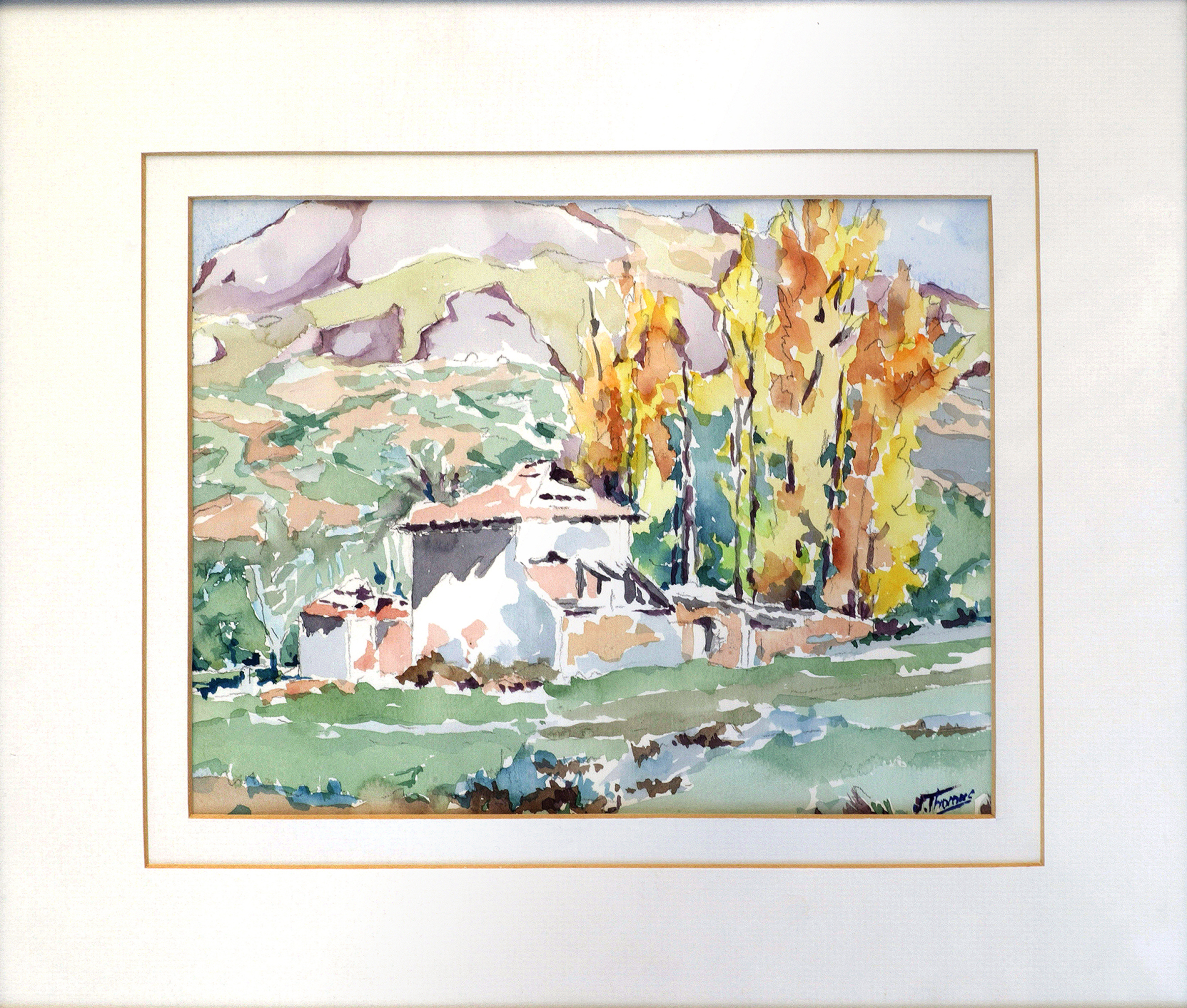 Ubicado en un espacio de montaña, destaca en primer término un viejo molino derruido junto a un grupo de árboles de hoja amarilla situados a su izquierda. Como fondo, las montañas que componen la granadina Sierra de la Alfaguara. El paisaje es representado de día, mediante manchas de color bastante amplias, especialmente en la campiña. Fue pintado por el autor en el mes de diciembre de 1992. Forma parte de la serie de acuarelas que de las sierras granadinas ha pintado Jesús Thomas.
