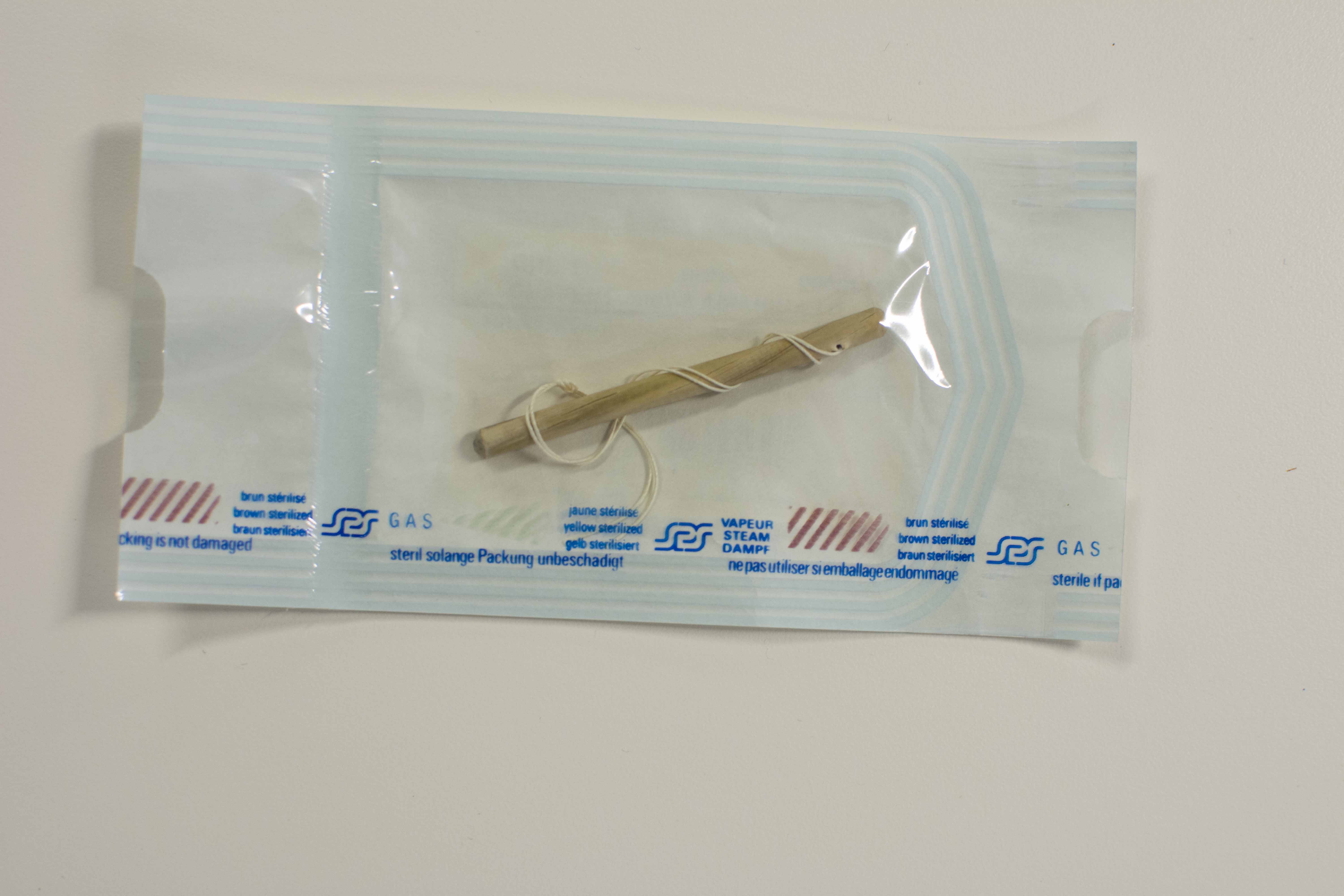 Dilatador uterino realizado utilizando diferentes especies de alga del género Laminaria, con un hilo de algodón sujeto a uno de los extremos a través de un agujero en la pieza principal. De aspecto pulido y suave, se utiliza para ensanchar de forma progresiva el cuello uterino durante el parto o para facilitar el acceso a la cavidad endometrial para la posterior introducción de instrumentos quirúrgicos en intervenciones que se realizan en el interior del útero.
