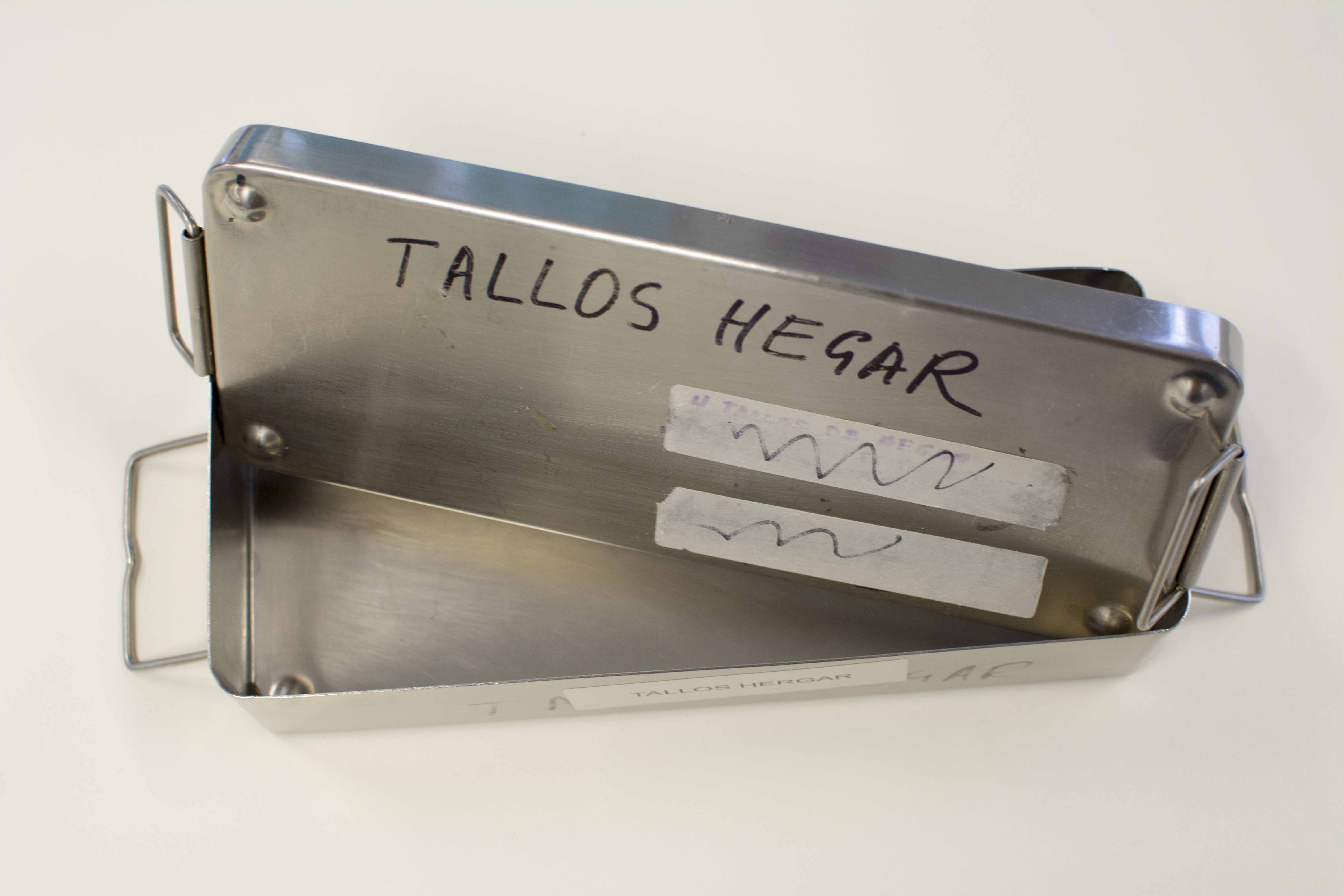 Escrito con rotulador indeleble, en la tapadera puede leerse: "TALLOS HEGAR"