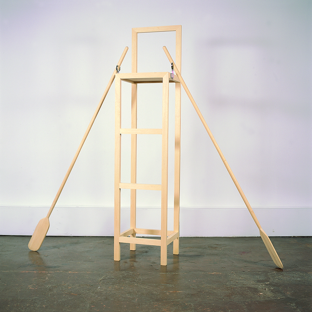 Las sillas del artista profundizan en los conceptos vinculados al amor y, en ocasiones, la identidad sexual de los individuos. En esta ocasión, el “Proyecto de navegación nº1” nos invita a sentarnos en un lugar elevado desde el que identificar al ser amado y, haciendo uso de los remos, intentar acercarnos a él. Pero, ¿es posible navegar sobre un objeto tan estático como una silla? Quizás su propósito sea el de cuestionar el cortejo, las fases de intimidad de la pareja y los miedos e incertidumbres previos a la declaración de intenciones, por eso su silla para navegar está anclada a la tierra, a un espacio sin agua en el que será imposible avanzar. Quizás también las ideas de amor e identidad sexual y de género impongan que las medidas de la silla sean múltiplos de dos. Solo el artista podría resolver estas dudas, pero ¿acaso no se planteó generarlas?