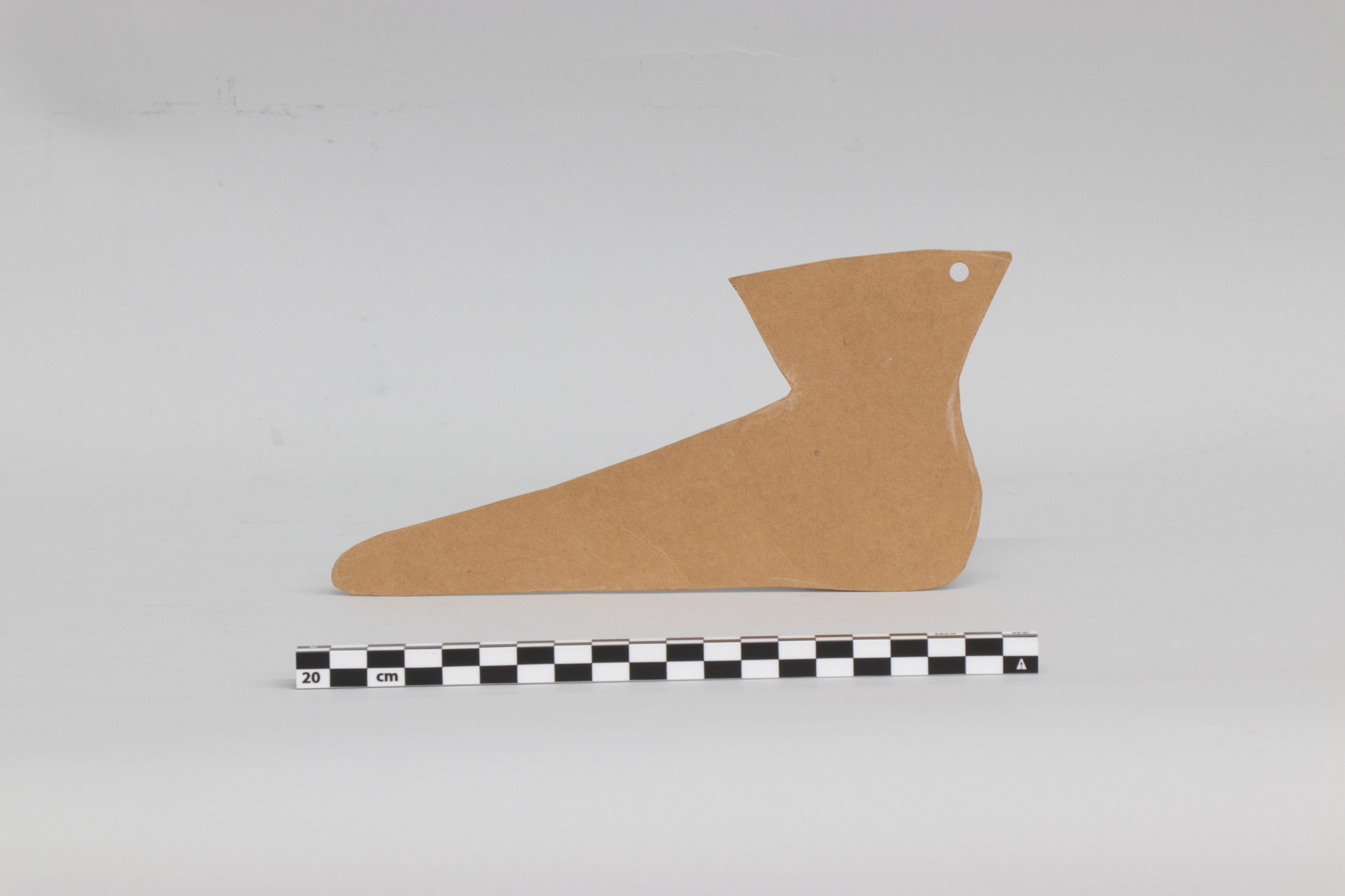 Patrón de papel concebido para el corte y confección de un zapato.