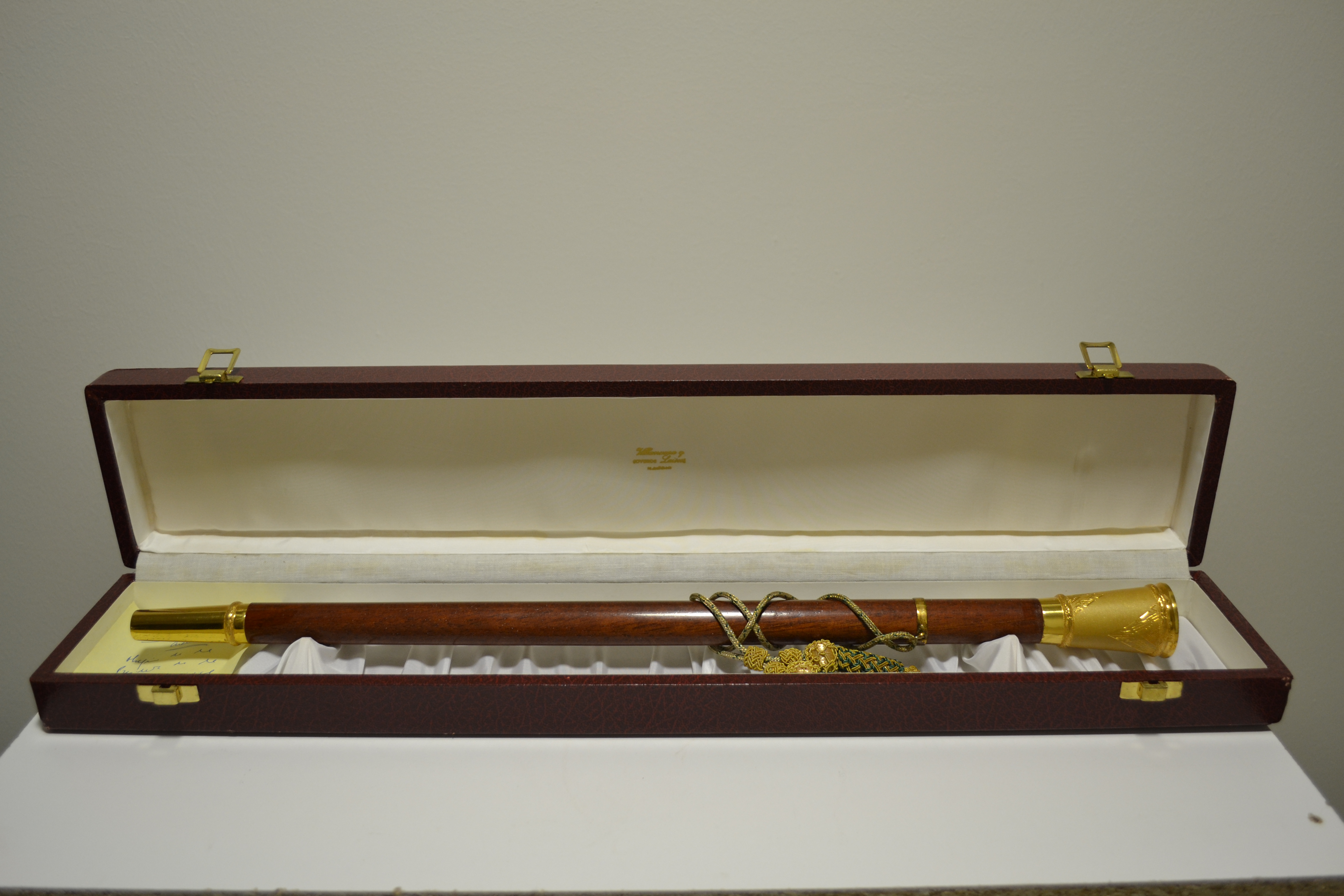 Bastón de mando de la ciudad de Cuenca. Regalo de la Presidenta de la Diputación de Cuenca con motivo del nombramiento de Federico Mayor Zaragoza como "Hijo Adoptivo" de la ciudad. Reconociéndose su contribución a la declaración de Cuenca como Ciudad Patrimonio de la Humanidad por la Unesco en 1996.