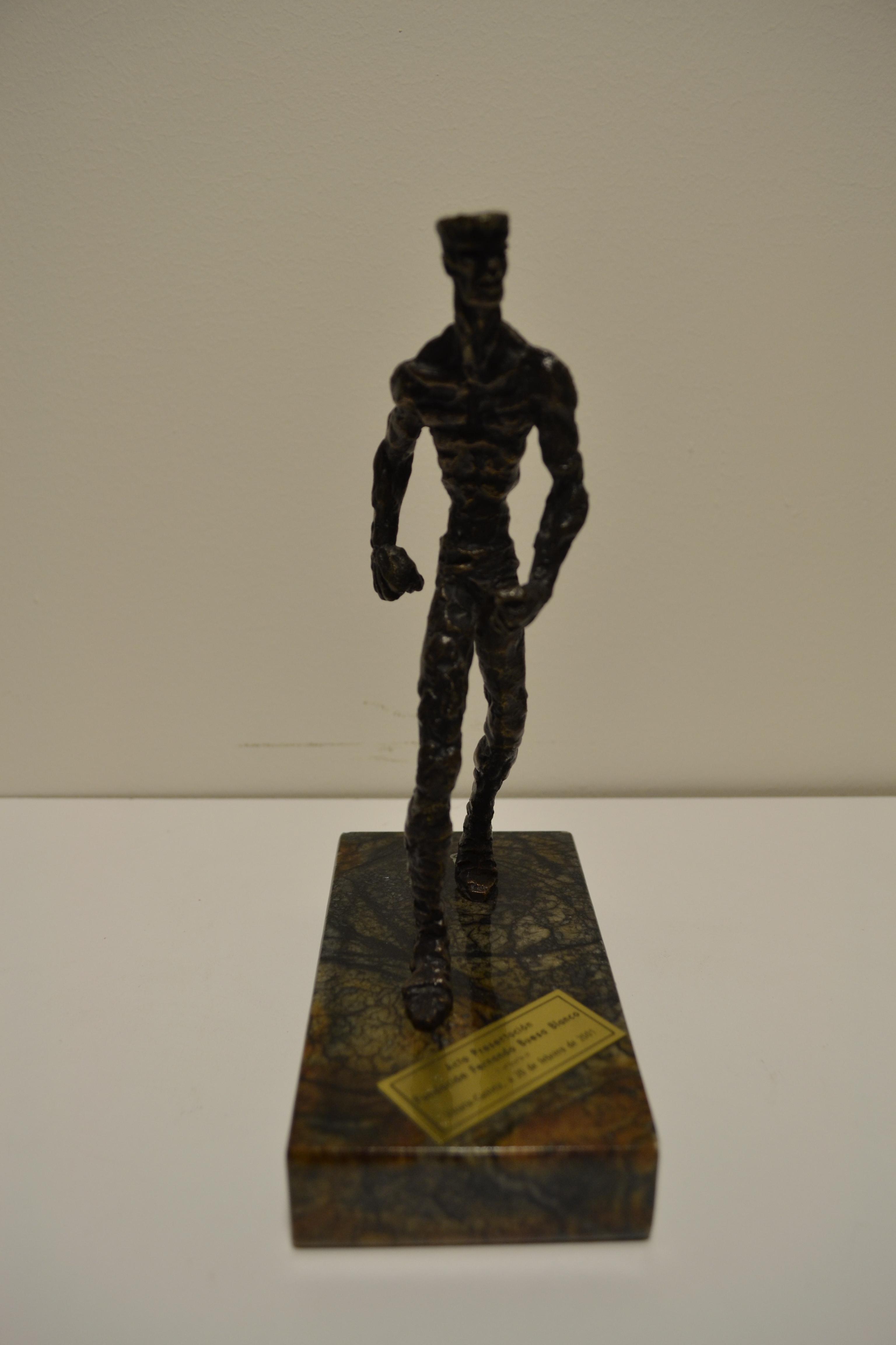 Escultura de bulto redondo en bronce sobre base de mármol.