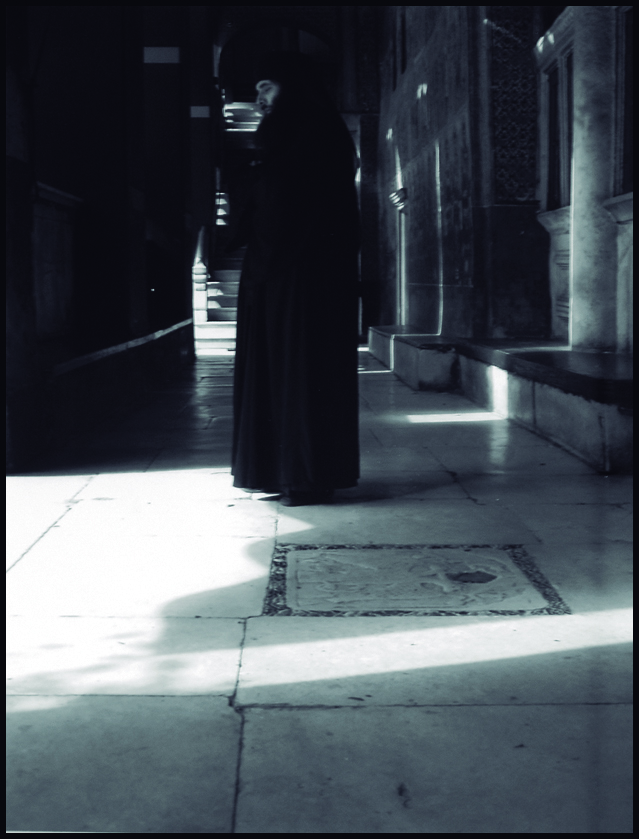 Fotografía tomada en el interior del Monasterio de Vatopediu donde se capta a un monje ortodoxo en su momento de meditación, jugando el autor de la obra con la presencia de luces y sombras para conseguir crear un ambiente inmersivo.