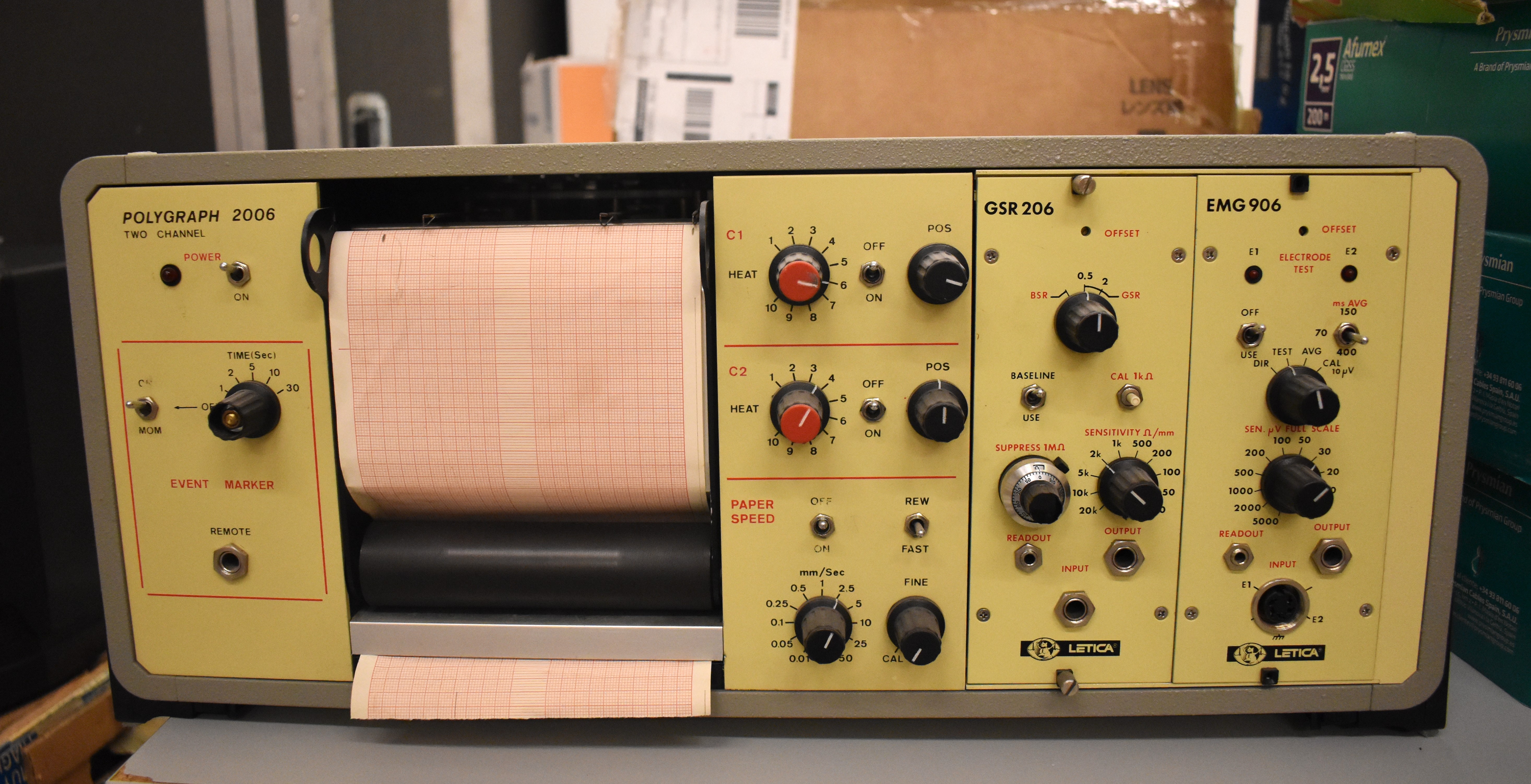 Polígrafo de dos canales Letica 2006. Dispone de un rollo de papel térmico milimetrado.