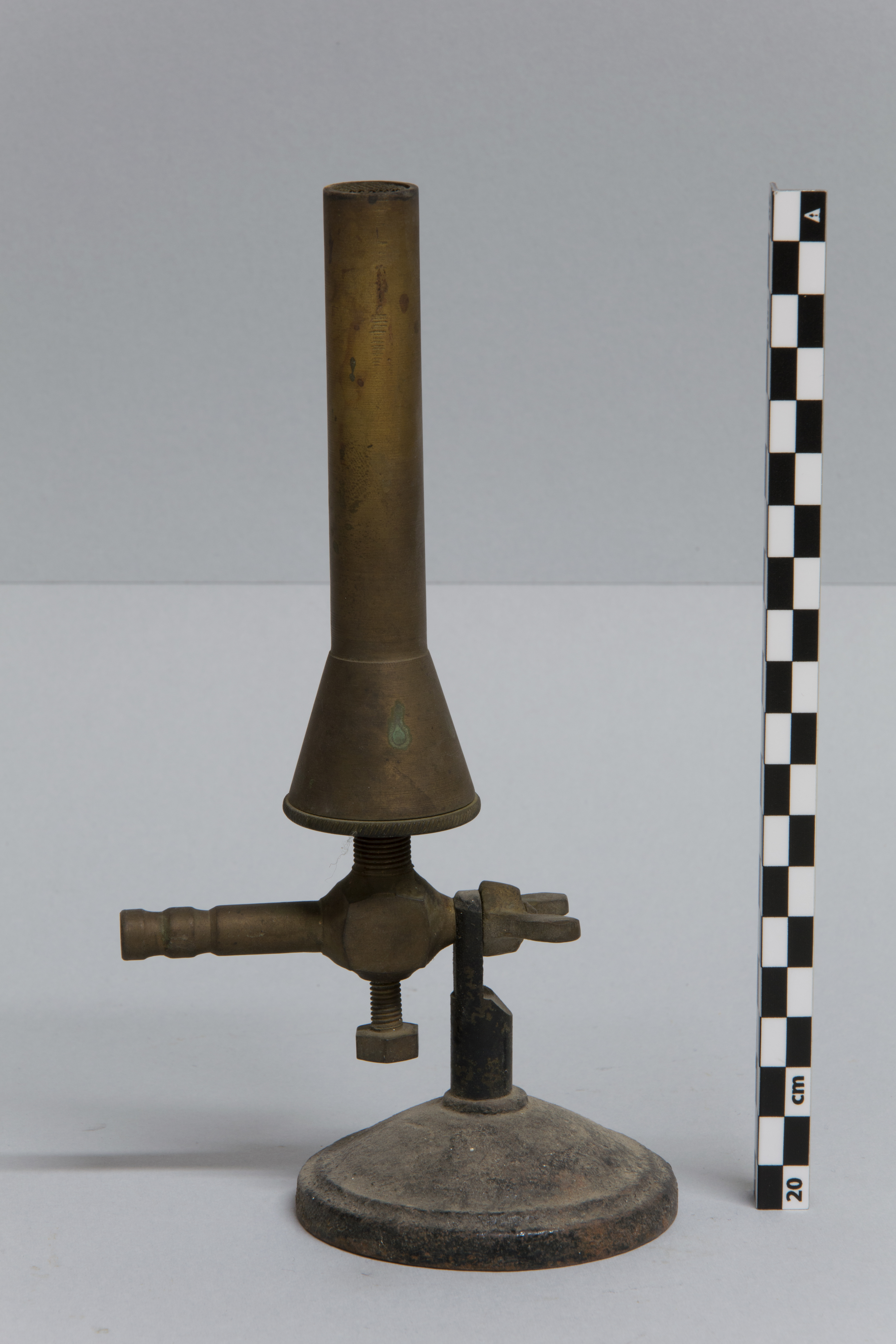 Se trata de un mechero de gas que produce una llama sin humo que puede regularse con mucha facilidad y provee una transmisión muy rápida de calor intenso en el laboratorio.