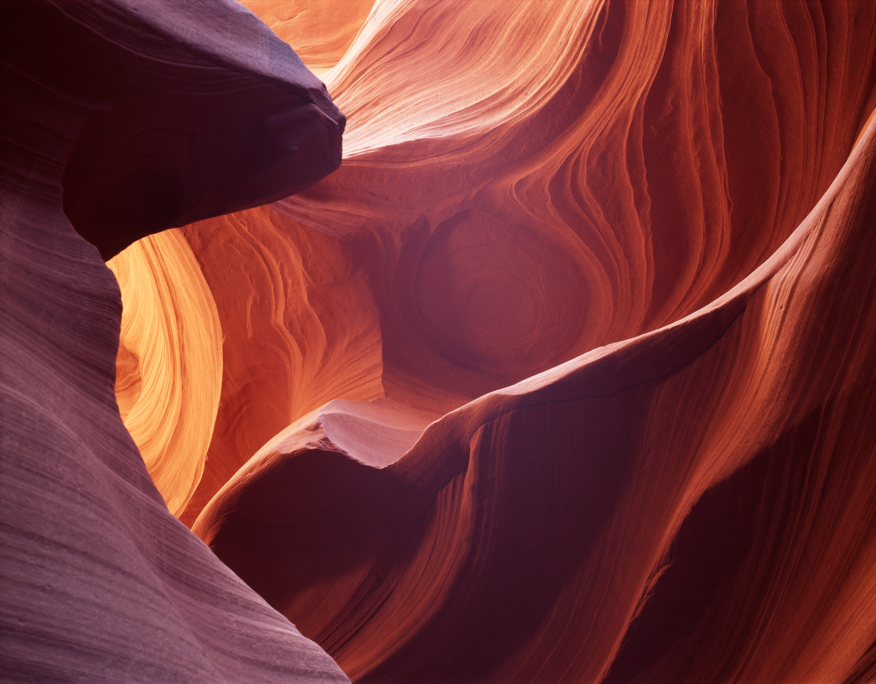 El fotógrafo concede especial protagonismo a la textura de las paredes de la oquedad, las líneas cromáticas que, desde el beige al rojo tierra, pasando por rosas y ocres de diferente saturación